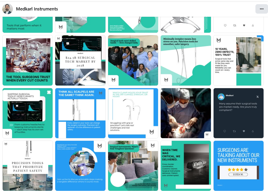 Built a premium e-commerce website for Medkarl showcasing surgical instruments. Designed modern branding identity with a teal color scheme, a responsive product catalog, and integrated WhatsApp integration. Features professional logo design, hero section with animated elements, and a complete customer management system for 500+ hospitals & clinics.